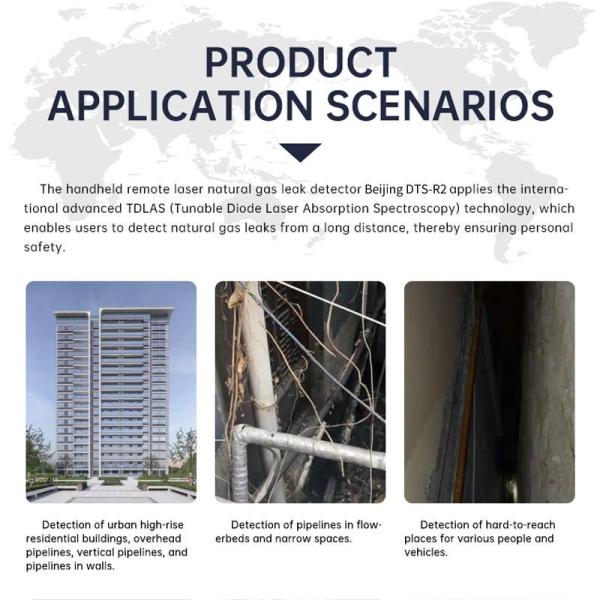 It uses tunable laser spectroscopy (TDLS) to quickly detect gas leaks up to 150 meters away.People can effectively detect hard-to-reach or inaccessible areas within safe areas, such as busy roads, dangling pipelines, tall towers, long haul pipelines, unattended rooms and more. Its use is not only effectively improve the efficiency and quality of walking inspection, but also makes easy which can not reach or difficult to reach the place of inspection possible.